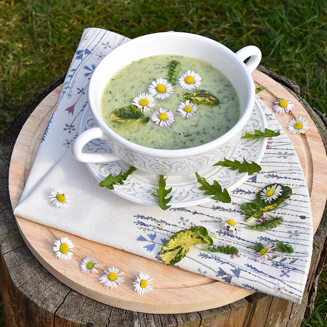 Jáhlová polévka s divokými bylinami